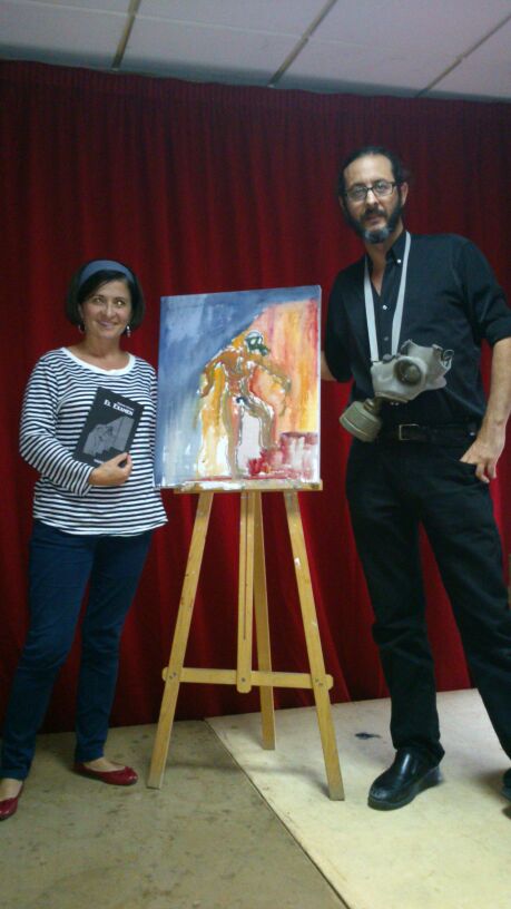 Con la ilustre pintora en La Puebla de Guzmán. Después de reinventar en directo la portada de la novela El Examen
